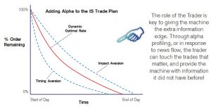 In fact, the tools have not really been designed to address the heart of the problem. So far, the typical algo toolkit available in the IS space has necessitated that the buy-side trader implements the trade plan, and makes micro decisions: for example, take a bet on where the price will go, and choose appropriate participation rates, etc.