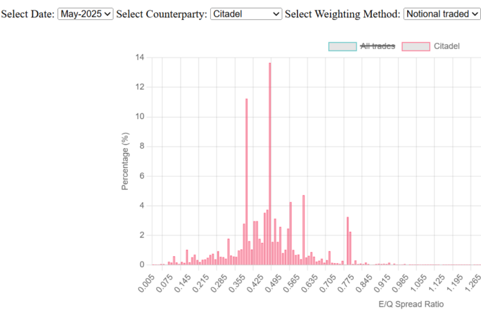 The return of calmer market conditions after April’s tariff turmoil led to slimmer pickings for giant market makers, as the price improvement offered to retail plummeted. This came as retail flows increased, even though overall volumes declined, Global Trading analysis shows.