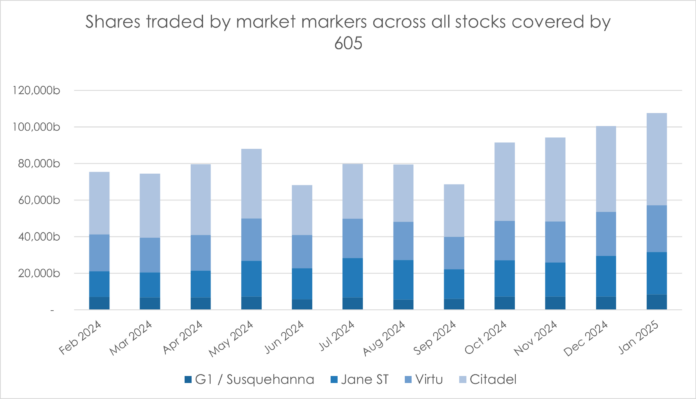 Citadel Securities, Susquehanna, Jane Street, and Virtu offered retail customers of brokers a combined US$3.2 billion improvement on pricing compared to public venues during 2024, according to Global Trading analysis of best execution filings.